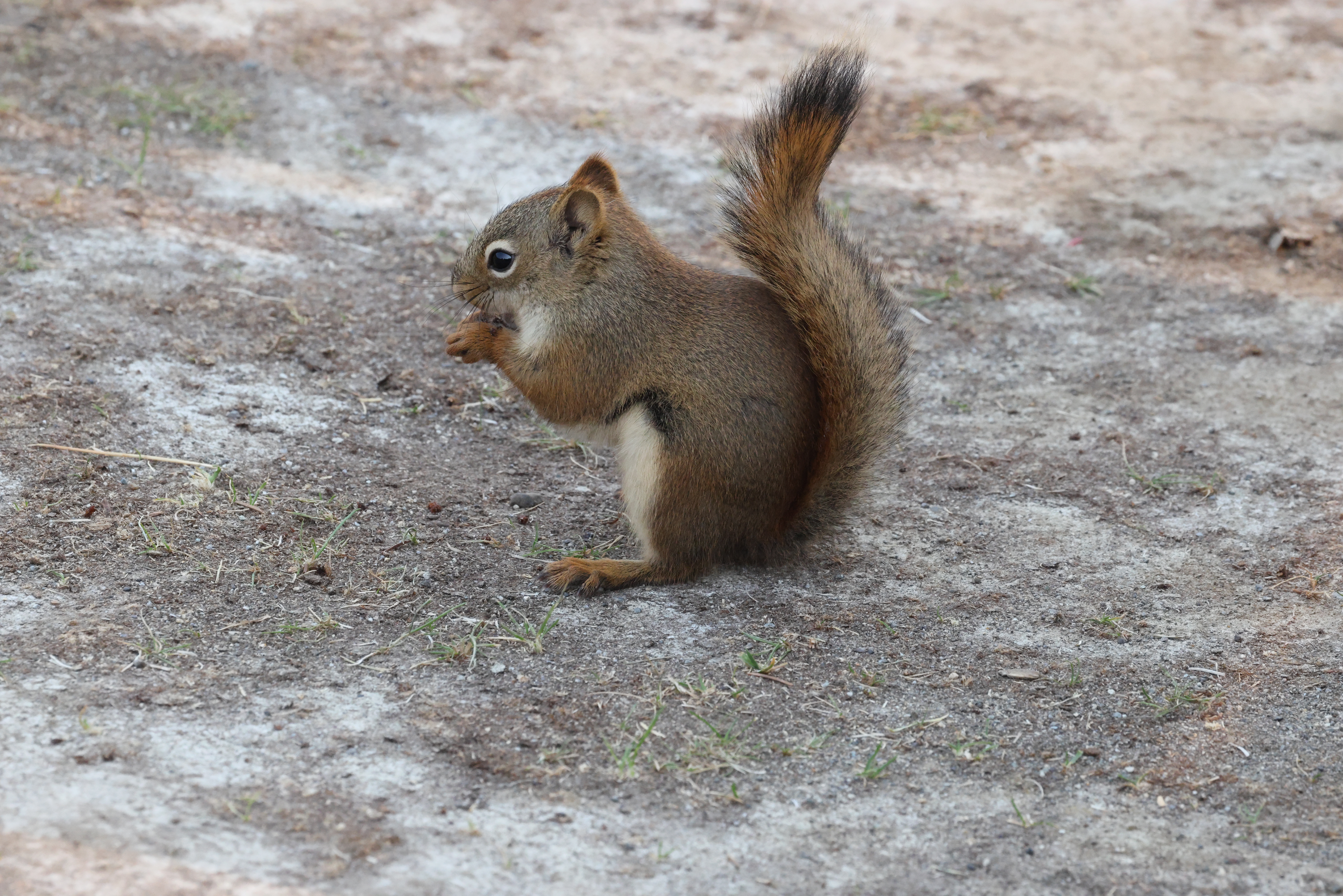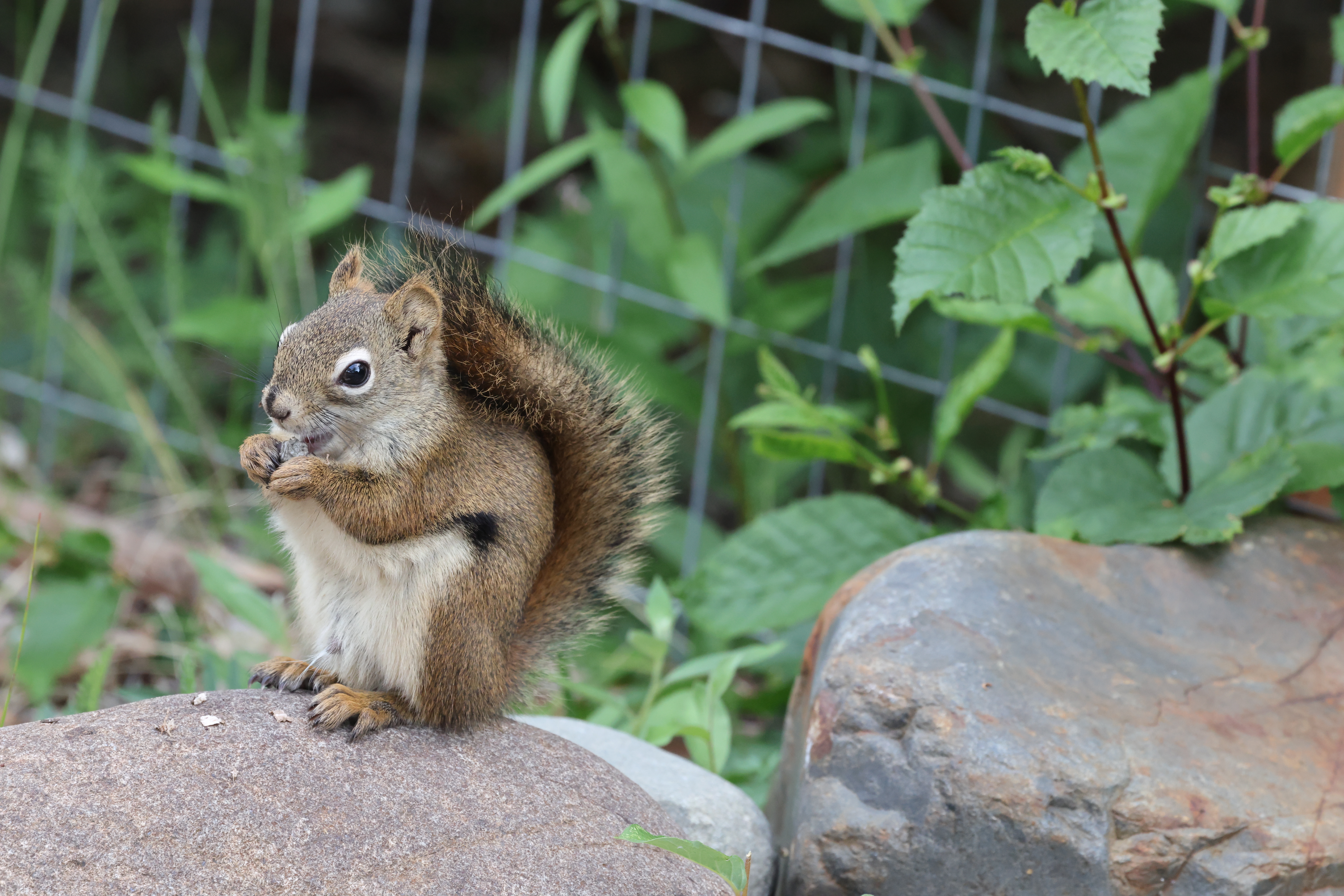 American Red Squirrel nibbling Tamiasciurus hudsonicus