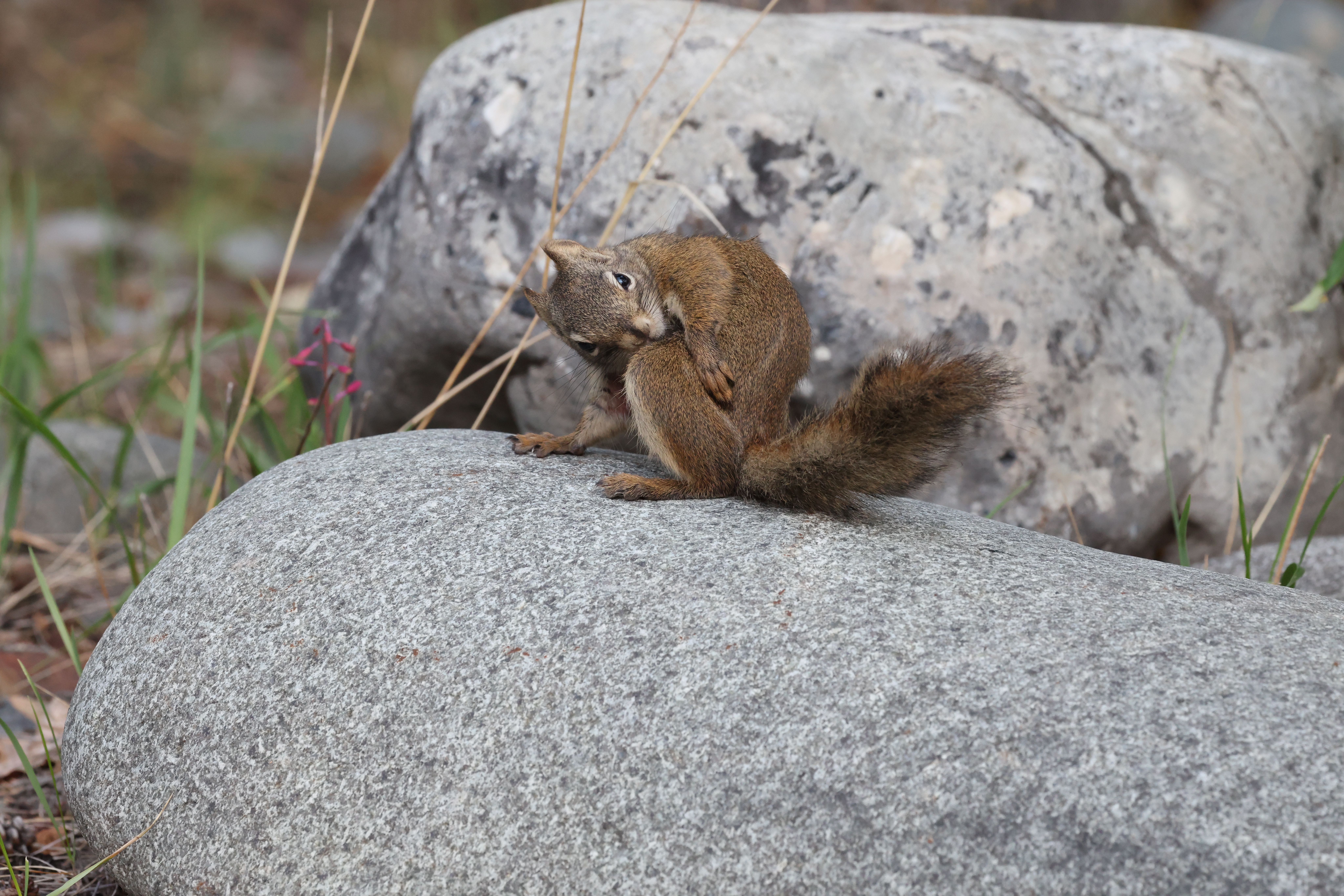 American Red Squirrel scratching Tamiasciurus hudsonicus
