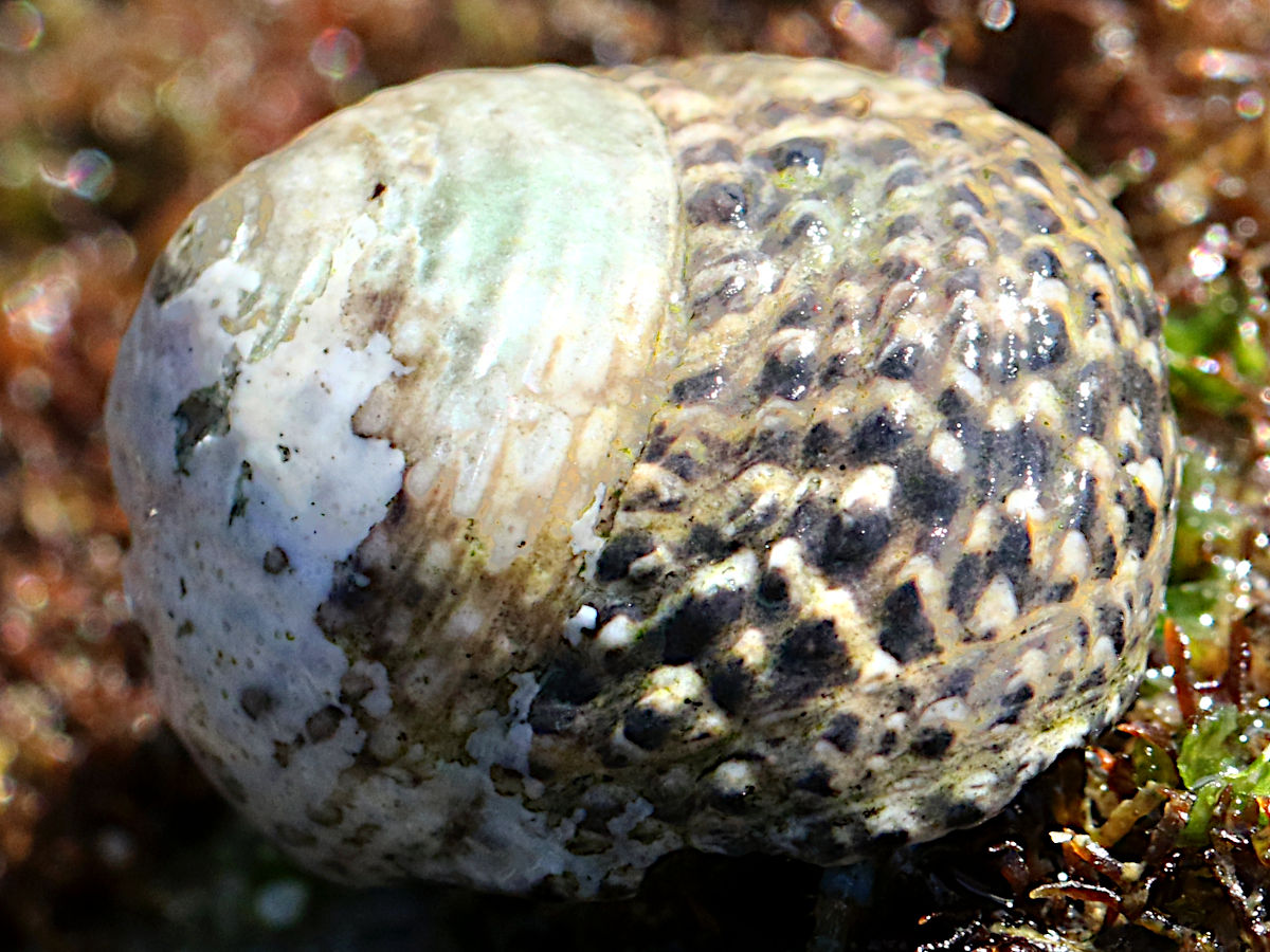 Little Brown Barnacle encrusting Dark Unicorn Chthamalus dalli