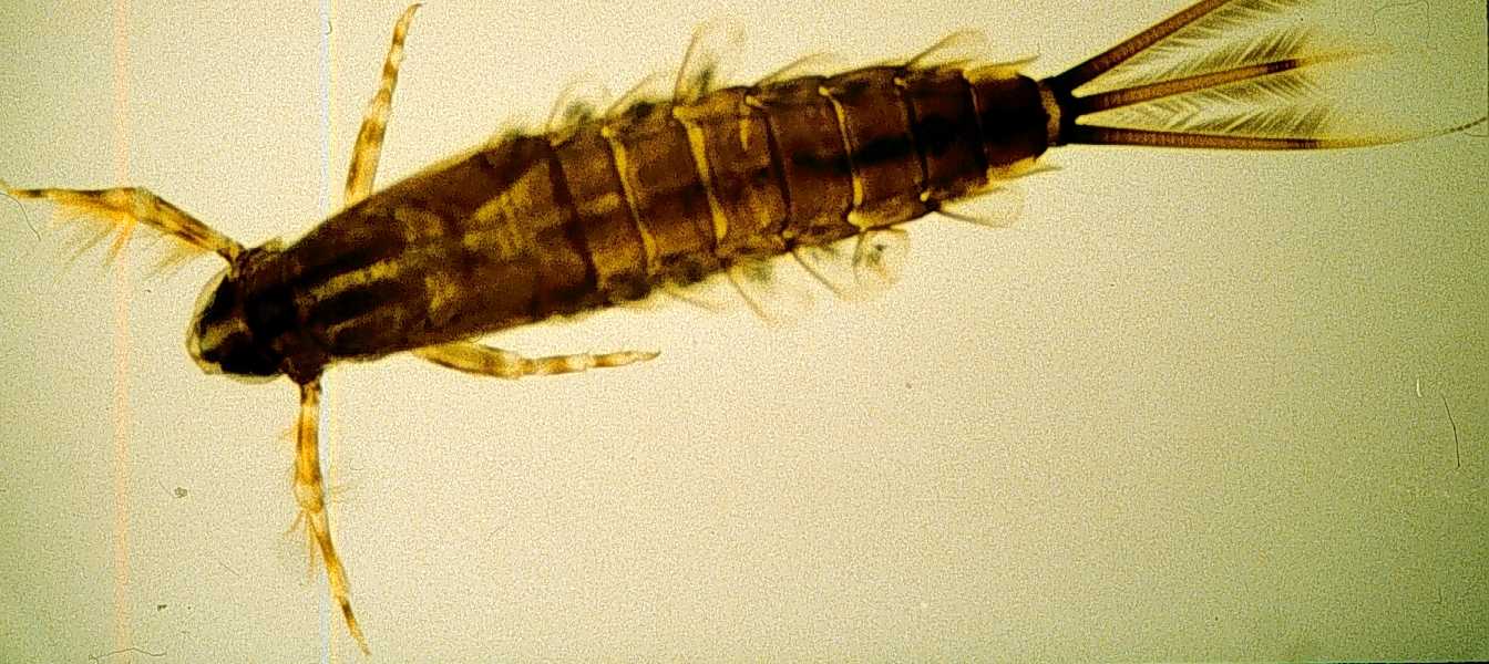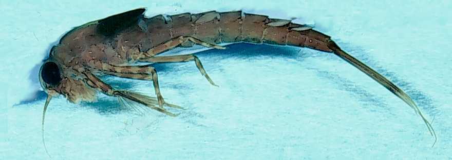 - 3 pairs of jointed legs, each with a single claw; 3 tail-like filament with dense fringe on inside edges.
