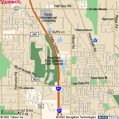 East on Deerfield Road 1 mile to Waukegan Road (Route 43).