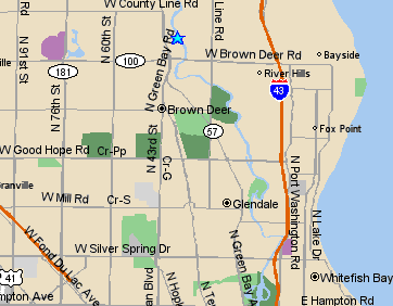 Exit I-43 at Good Hope Rd, go east on Good Hope Rd 1 short block,